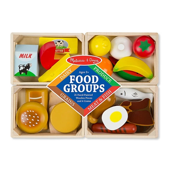 - Introduce your child to imaginary play and basic nutrition with the highly detailed pieces in this Melissa and Doug Food Groups Set